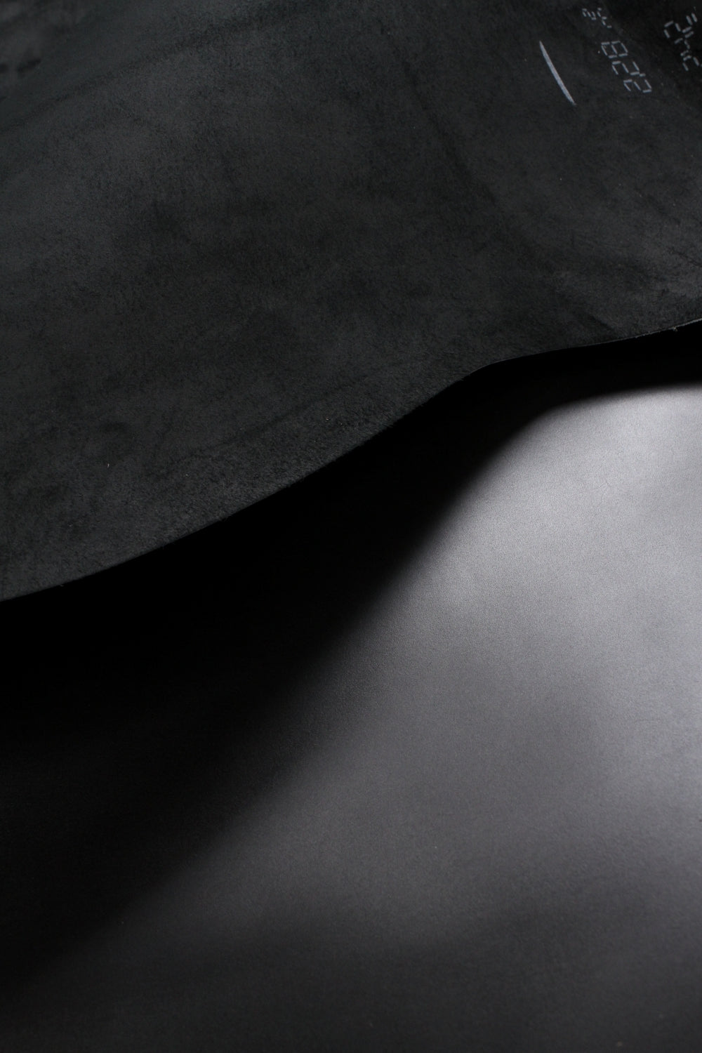 - 成牛のベンズ(首と腹を取り除いた部位)をアウトソール用に仕上げた革。1足分の大きさです。